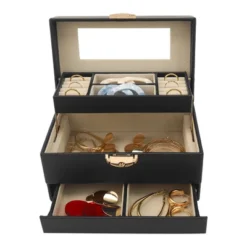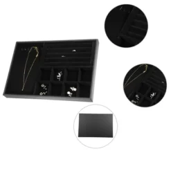 Unique Bargains 4 Pack PU Leather Jewelry Organizer Trays With Removable Dividers For Drawers Black
