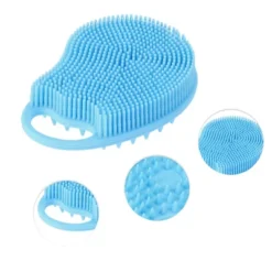 Unique Bargains Double Sided Bath Brush Wood Back Scrubber With Handle For Shower Brown 1 Pcs