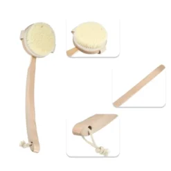 Unique Bargains Long Curved Handle Bath Brush For Shower 15.94″ Length Beige 1 Pc