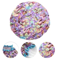 Unique Bargains Women Double Layer Flowers Shower Cap Purple 1 Pc