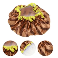 Unique Bargains Women Durable Stripe Shower Cap Coffee Color 1 Pc