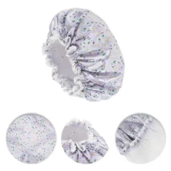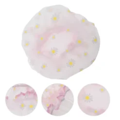 Unique Bargains Women’s Waterproof Heart Shape Elastic Shower Hair Cap Pink Green Black 3 Pcs