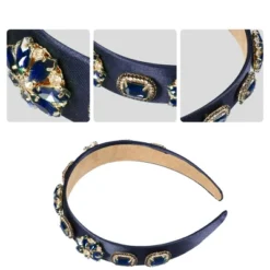 Unique Bargains Women’s Bling Vintage Flowers Rhinestone Satin Wide Edge Headband 5.12″x1.18″ 1pc