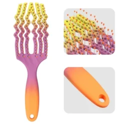 Unique Bargains Magic Handle Tangle Shower Hair Detangling Brush Comb Orange Pattern
