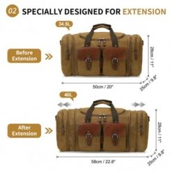 Unique Bargains Canvas Leather Accents Expandable Multi-Pocket Duffel Bag 20″ X 9.8″ X 11″ Coffee