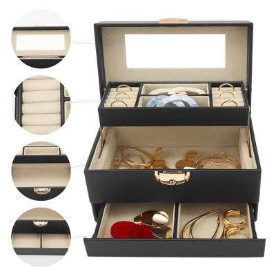- This large jewelry holder organizer contains 1 layer necklace organizer, 1 layer with different size area, and 2 drawers