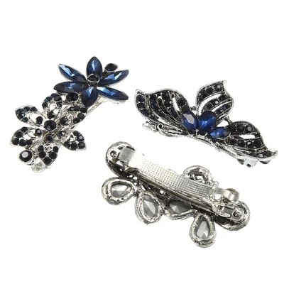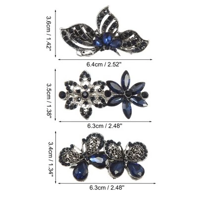 Item Function: 1. 3 different designs are suitable for various occasions such as it suitable for both day and night looks on any occasion, weddings, parties, photo props, proms, Christmas, and any other important occasion. Make you present unique classic elegance. 2. The hair clips are compact and portable, which allow you to take them anywhere. 3. Simple design, and fashionable style, add brilliance to your hair. The hair clip is fashionable and creative, making you stand out and eye-catching. Specifications: Product Name: Hair Barrettes; Material: Metal; Quantity: 3 Pcs; Color: Blue, Black; Size 1: 6.4×3.6cm / 2.52”x1.42′(L*W), Size 2: 6.3×3.4cm / 2.48”x1.34”(L*W), Size 3: 6.3×3.5cm / 2.48”x1.38”(L*W); Package List: 3 Pcs Hair Barrettes