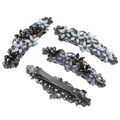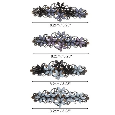 Item Function: 1. Suitable for various occasions such as it suitable for both day and night looks on any occasion, weddings, parties, photo props, proms, Christmas, and any other important occasion. Make you present unique classic elegance. 2. The hair clips are compact and portable, which allow you to take them anywhere. 3. Simple design, and fashionable style, add brilliance to your hair.The hair clip is fashionable and creative, making you stand out and eye-catching. Specifications: Product Name: Hair Barrettes; Material: Metal; Quantity: 4 Pcs; Color: Multicolor; Size: 8.2x3cm / 3.23”x1.18′(L*W); Package List: 4 Pcs Hair Barrettes