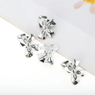 Unique Bargains Bow Shoelace Charms Silver Tone 4 Pcs