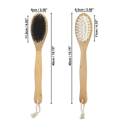 This Long Handle Bath Brush is suitable for use when taking a shower or bath. It can easily produce a large amount of foam for cleaner cleaning. It can also be used for simple massage, promote bloods circulation, and remove dead skin. A good bath brush can bring you a better experience during bathing, allowing you to enjoy bathing more. Please Note: Please allow slightly measuring deviation due to manual measurement. Specification: Color: Deep Brown; Material: Bamboo, Horsehair; Size: 40×7.7cm / 15.75″x3.03″(L*W); Brush Cross-Section Size 1: 11.5x6cm / 4.53″x2.36″(L*W); Brush Cross-Section Size 2: 11×6.5cm / 4.33″x2.56″(L*W); Package Included: 1 Pc Shower Brush.