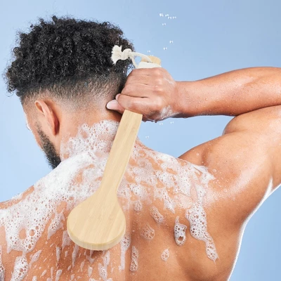 - Carefully selected from quality Nanzhu, the handle of the shower scrubber provides a comfortable and secure grip