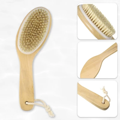 - This natural bristle dry skin body brush provides a complete bath time cleaning experience