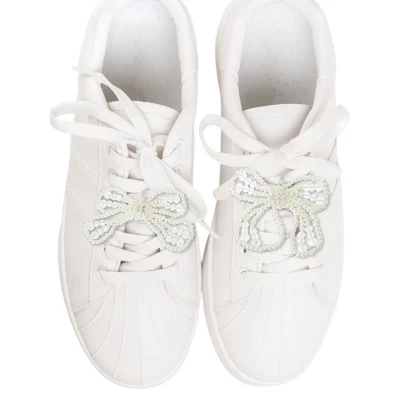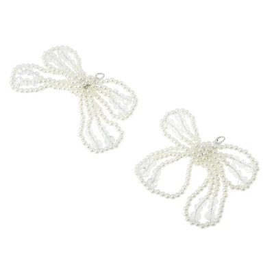 Unique Bargains Faux Pearl Bow 15 Shoelace Charms White 1 Pair