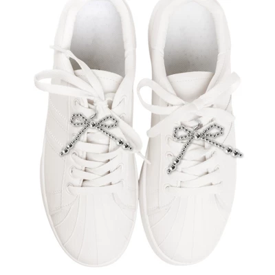Unique Bargains Faux Pearl Bow Style 11 Shoelace Charms Silver Tone 1 Pair