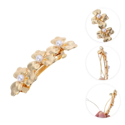 Unique Bargains Grace Flower Hair Clips Gold Tone 1 Pc