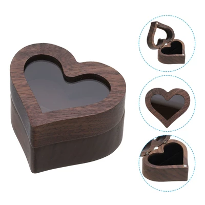 Heart-shaped box is versatile and can be used for storing rings at home or while traveling. It can also be used as a display holder for rings at jewelry stores and trade fairs. In addition to rings of different sizes, it is also suitable for storing earrings, mini brooches, and more. Engagement ring box is crafted from premium natural wood, ensuring its longevity and durability. It features a smooth surface with a distinctive wood grain texture, adding to its overall aesthetic appeal. Jewelry box holder has a convenient transparent window design, so the ring can be seen from the outside without opening it. Ring storage boxes are equipped with small circular magnets at the opening. This feature provides the secure and safe storage of your valuable rings in the box while also making it convenient to remove and store them.