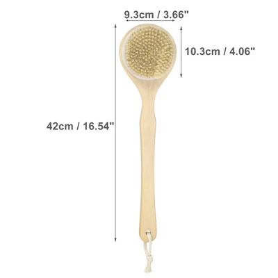 Item Function: 1. The Shower Brush suits all kinds of gel or soap. Creates lots of lather while bathing. Exfoliation in a soft way. 2. It can also dry brush, massage the skin, promote bloods circulation and remove dead skin. 3. The products are subject to good quality control. Carefully select the good materials to ensure you have a good experience during the bathing process. 4. It is recommended to replace the bath brush every 3-6 months to ensure clean. 5. Please Note: Please allow slight measuring deviation due to manual measurement. Specification: Color: Yellow; Material: Wood, Boar Bristles; Total Length: 42cm / 16.54″; Brush Cross-Section Size: 10.3×9.3cm / 4.06″x3.66″(L*W); Package Included: 1 Pc Shower Brush.