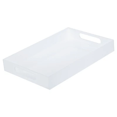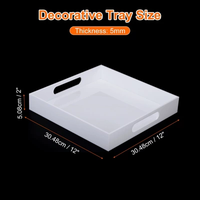 Decorate And Organize Your Home. This eye-catching modern glossy tray with white acrylic cutout handles is the perfect addition to your home or office. Place in multiple areas of the house, a living room table as a centerpiece, an ottoman, and a coffee table for the reception. it can store or organize food and drinks, breakfast in bed, and all items like keys, daily mail, TV remote utensils, perfume, flowers, coffee, candles, etc. Please hand wash, wipe clean with a damp cloth, and dry it immediately.