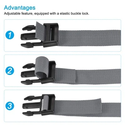 Crafted from a combination of durable plastic and polyester materials, the luggage strap is wear-resistant, portable, reusable, and maintains its shape over extended periods of use. The adjustable design allows for a customized fit, while the quick-release buckle lock ensures a secure connection that is not easily lost. These versatile straps not only provide convenient bag attachment and release but also enhance luggage security. With their long-lasting performance and user-friendly features, they are an ideal choice for your travel needs.