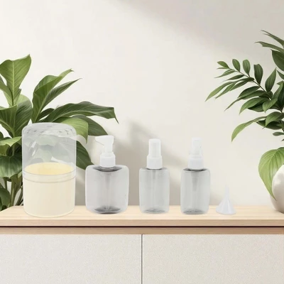 Keep your liquids organized and travel-ready with the versatile travel container set. Made from durable materials, these reusable bottles and jars withstand frequent use without cracking or staining. Great for toiletries, skincare, haircare, this set is suitable for frequent travelers, gym-goers, or daily use. Compact yet functional, it simplifies packing while keeping your belongings secure and mess-free. If it gets dirty accidentally, just wipe or wash it with water.