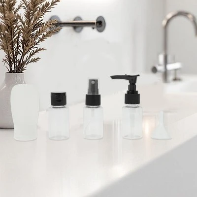 This travel toiletry set includes a variety of leak-proof bottles and jars, suitable for shampoo, lotion, and other liquids. The compact design fits neatly in your bag. Whether for a weekend getaway or a long trip, this set keeps your toiletries organized and ready to go. If it gets dirty accidentally, just wipe or wash it with water.