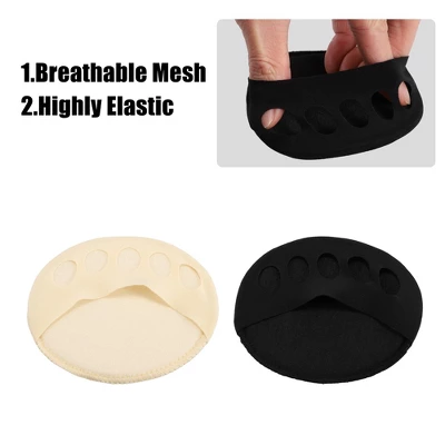 Item Function: 1. Soft and comfortable cotton fabric front footbed. 2. Dry and breathable, soft and comfortable, elegant classic design shape, non-slip and safe. 3. Soft and elastic fiber material with high contraction, not tight, easy to move, long-standing or rubbing, providing better all-day comfort. 4. These socks are A Show Design, Easy to match a variety of shoes, and the unique open-hole design creates unique pores in the footbed, allowing air to circulate freely, effectively relieving foot sweat and absorbing excess moisture. 5. Metatarsal pads are suitable for various foot types, elastic and breathable, humanized in design, help reduce forefoot pressure and tension, and are non-sweaty, and non-slip. 6. Please Note: One size fits most women. 7. Product Name: Forefoot Pads; Material: Cotton; Quantity: 4 Pair; Colour: Black, Beige; Package List: 4 Pair Forefoot Pads.