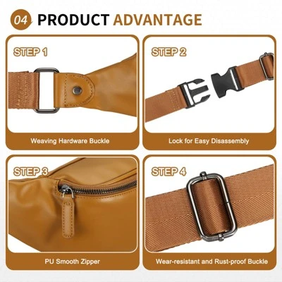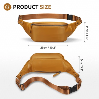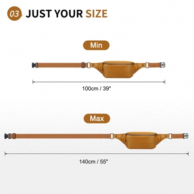 Crafted from ultra-soft faux leather, this leather belt bag offers a luxurious and comfortable feel. Its smooth texture adds elegance while ensuring durability for daily wear. Enjoy the stylish and practical design that complements any outfit. This belt bag can be worn in three ways: as a crossbody, chest bag, or waist pack. Adjust the strap to fit your body shape for a custom fit. Perfect for hands-free convenience, whether at home or on the go. With two smooth, durable zippers, this leather belt bag provides ample space for your essentials. The main compartment holds your phone, keys, tissues, and coins, while the back zipper keeps your valuables secure. Perfect for travel, daily use, running, or hiking, this leather belt bag allows you to stay hands-free during activities. Its practicality and comfort make it a must-have accessory for all your adventures. This belt bag makes a thoughtful gift for both men and women. It combines fashion and functionality in one stylish package, optimal for birthdays, holidays, and special occasions.