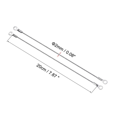 Stainless steel lanyard cable is mainly used to connect objects or furniture hanging decorations, such as doors, curtains, boards or hanging lamps, and other decorations.Widely used indoors and outdoors.Silver Color and it is made of 304 Stainless Steel, stable and durable.1.5mm x 10cm / 0.06 inch x 3.94 inches (Dia.*L), fit for many occassions.Package Content: 6 Pack x Steel Cable.With eyelets at both ends lock items well, it can protect the random swinging doors from damage when fixing the room and cabinet door.String the items together with the wire rope, then lock it.Please confirm the correct size before ordering.