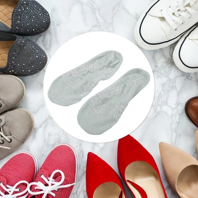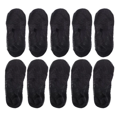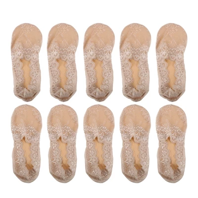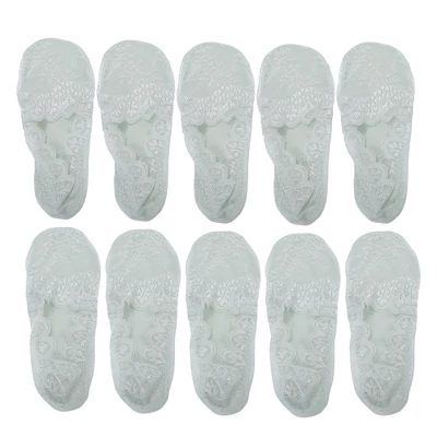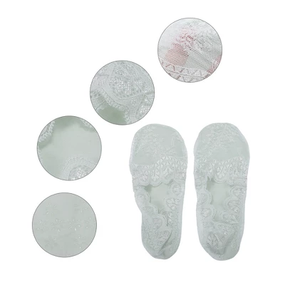 Item Function: 1. Made of highly elastic fiber material which is of high contraction, the breathable elastic cuff tab locks tightly around the heel to prevent socks from slipping off. 2. The socks are designed for easy movement and the lace design is classic and elegant. With the anti-slip function, the socks are suitable for multi-scene use. 3. Lightweight and soft material for improved underfoot comfort. Please Note: One size fits most women. Specifictions: Product Name: Lace Socks, Material: Nylon, Quantity: 5 Pairs, Package List : 5 Pairs Invisible Lace Socks.