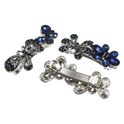 Item Function: 1. 3 different designs are suitable for various occasions such as it suitable for both day and night looks on any occasion, weddings, parties, photo props, proms, Christmas, and any other important occasion. Make you present unique classic elegance. 2. The hair clips are compact and portable, which allow you to take them anywhere. 3. Simple design, and fashionable style, add brilliance to your hair. The hair clip is fashionable and creative, making you stand out and eye-catching. Specifications: Product Name: Hair Barrettes; Material: Metal; Quantity: 3 Pcs; Color: Blue, Black; Size 1: 6.2×3.2cm / 2.44”x1.26”(L*W), Size 2: 6.3×2.9cm / 2.48”x1.14”(L*W), Size 3: 6.7×3.0cm / 2.64’x1.18”(L*W); Package List: 3 Pcs Hair Barrettes