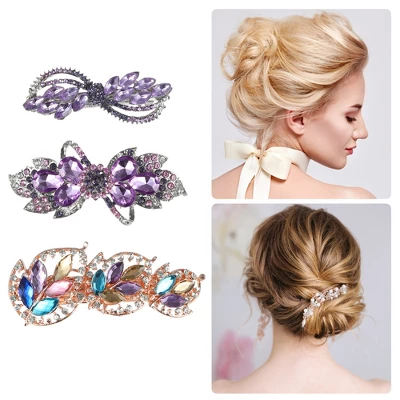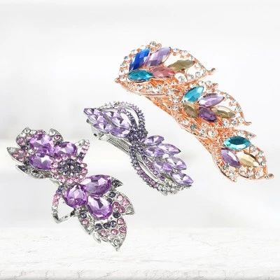 Item Function: 1.This claw clip are good quality Hair accessories. The hair clip is fashionable and creative, making you stand out and eye-catching. 2. The hair clip can pair with your beautiful clothes in various styles.3 different designs are suitable for various occasions such as it suitable for both day and night looks on any occasion, weddings, parties, photo prop, prom, Christmas, and anyother important occasion. 3. Make you present unique classic elegance.Great gift idea for your lover,family,friends and yourself ,when somefestival such as birthdays, anniversaries, Valentine’s Day, Mother’s Day, NewYears Day Christmas Day and so on.Metal alloy material makes the clips durable and shiny. These are no ordinary Hair Barrette. The hair clips are compact and portable,which allow you to take it anywhere.How do you like this offer. Specifications: Product Name: Hair Barrettes; Material: Crystal, Metal; Quantity: 3 Pack; Color: Multicolor, Size 1: 6.5×1.2cm / 2.56”x0.47”(L*W), Size 2: 7.8×1.8cm / 3.07”x0.71”(L*W), Size 3: 8.6x2cm / 3.39”x0.79”(L*W), Package List: 3 Pack Hair Barrettes.