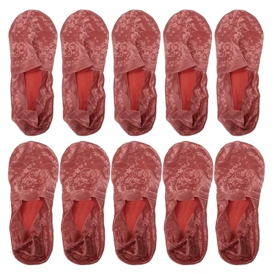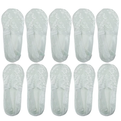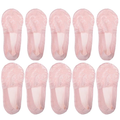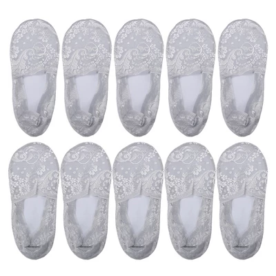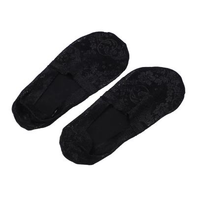Item Function: 1. Made of highly elastic fiber material which is of high contraction, the breathable elastic cuff tab locks tightly around the heel to prevent socks from slipping off. 2. The socks are designed for easy movement and the lace design is classic and elegant. With the anti-slip function, the socks are suitable for multi-scene use. 3. Lightweight and soft material for improved underfoot comfort. Please Note: One size fits most women. Specifictions: Product Name: Lace Socks, Material: Nylon, Quantity: 5 Pairs, Package List : 5 Pairs Invisible Lace Socks.