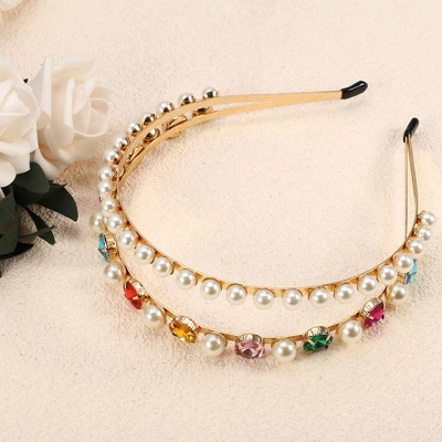 - This headband is made of pearls and colored rhinestone inlay, lets you shine in the crowd
