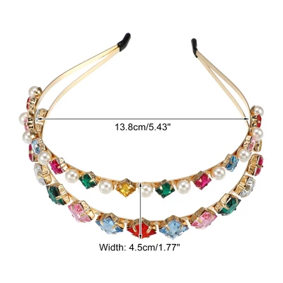 - This headband is made of pearls and colored rhinestone inlay, lets you shine in the crowd