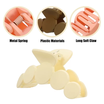 Fashion style and easy to use, fit for almost females in daily use, and can comfortably clamp the hair and provide firm support without falling.Using plastic materials, and the use of durable metal springs that do not rust, and an additional layer of protective oil technology to extend the service life of the hair claw.Great gift idea for your lover, family, friends, and yourself, suitable for girls, or women.Nice hair accessories for everyday wear.Color: White, Brown, Light Orange.Material: Plastic, Size: 10×3.9×4.5cm / 3.94”x1.54”x1.77”(L*W*H), Clamp Max Height: 8.8cm / 3.45”, Package Included: 3 pcs Hair Claw.