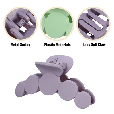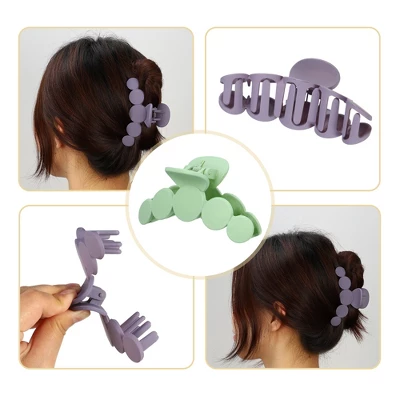 Item Function: 1. Fashion style and easy to use, fit for almost females in daily use and can comfortably clamp the hair and provide firm support without falling. 2. Using plastic materials, and the use of durable metal springs that do not rust, and an additional layer of protective oil technology to extend the service life of the hair claw. 3. Great gift idea for your lover, family, friends, and yourself, suitable for girls, or women. 4. Nice hair accessories for everyday wear. Specification: Color: Black, Purple, Green, Material: Plastic, Size: 10×3.9×4.5cm / 3.94”x1.54”x1.77”(L*W*H), Clamp Max Height: 8.8cm / 3.45”, Package Included: 3 pcs Hair Claw.