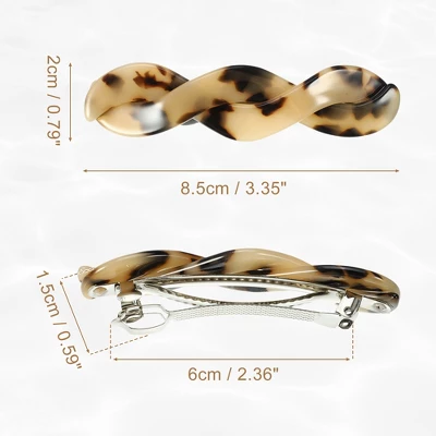 Item Function: 1. The hair barrettes not only can fix the hair but can also be used as hair accessories to add beauty to the hairstyle and daily clothing. 2. Suitable for a variety of hairstyles, such as long hair, short hair, curly hair, thin hair, fine hair, or updos. 3. Made of durable material, it is not easy to deform, and has a smooth surface to wear easily. 4. The hair clips are compact and portable, which allow you to take them anywhere, and not easy to pull the hair. 5. Simple design, and fashionable style, add brilliance to your hair. The hair clip is fashionable and creative, making you stand out and eye-catching. Please Note: Please allow slight differences in patterns and colors due to different monitor resolutions or different product production batches. Thank you for your understanding! Specifications: Product Name: Hair Barrettes; Material: Acetate, Metal; Color: White, Brown; Size: 8.5x2x1.5cm / 3.35″x0.79″x0.59″(L*W*H); Bottom Clip Length: 6cm / 2.36″; Package List: 2 Pcs Hair Barrettes.