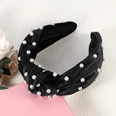 - Material: Velvet, Size: 17x12x3.5cm / 6.69″x4.72″x1.38″(L*W*H), Package Included: 1 Pc Faux Pearl Knotted Headband